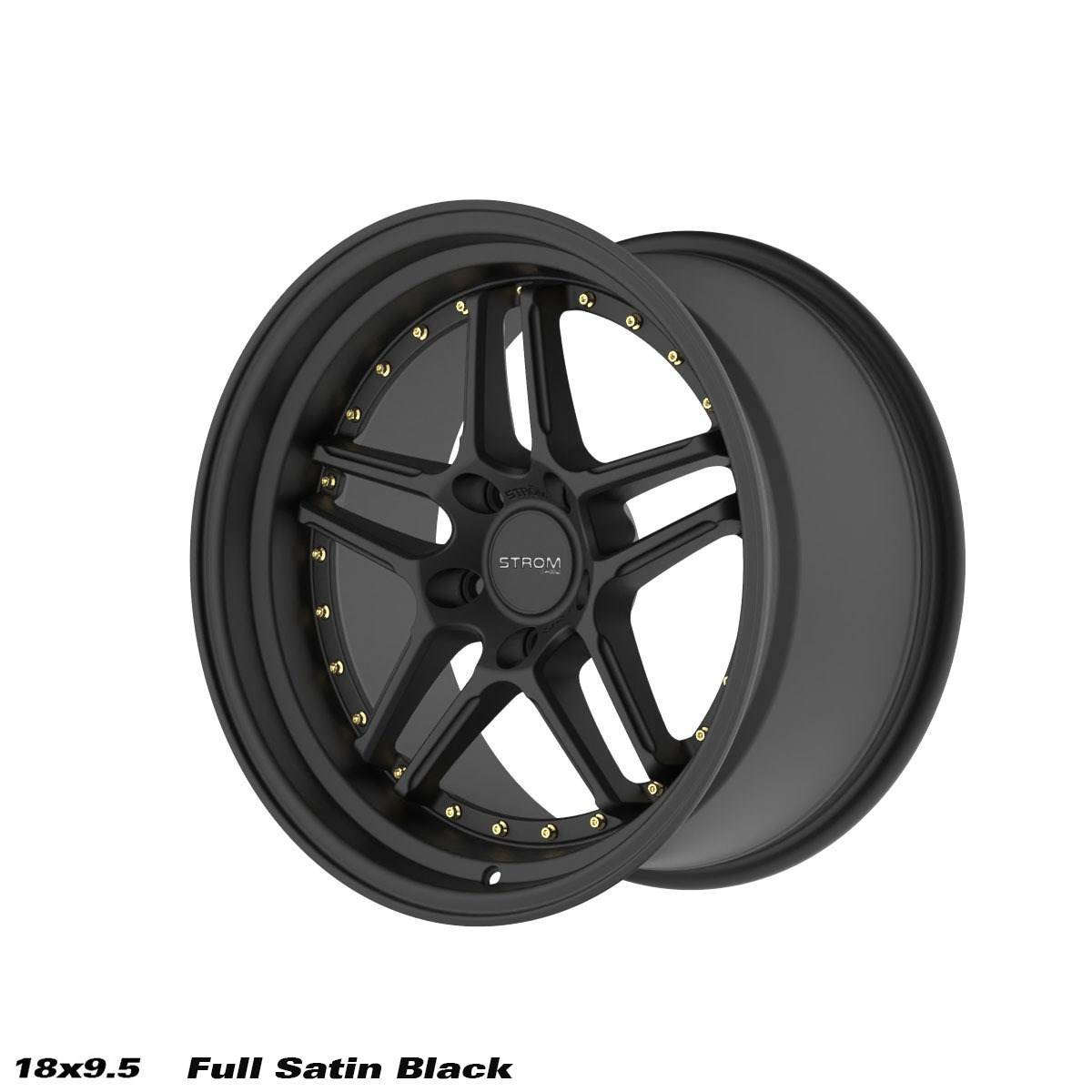Felga aluminiowa 18″ Strom DS-05 18×9,5 ET15 5×114.3 Full Satin Black w/ Gold Rivets